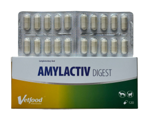 20 kapsułek pochodzących z oryginalnego opakowania Vetfood Amylactiv Digest 120 kapsułek.